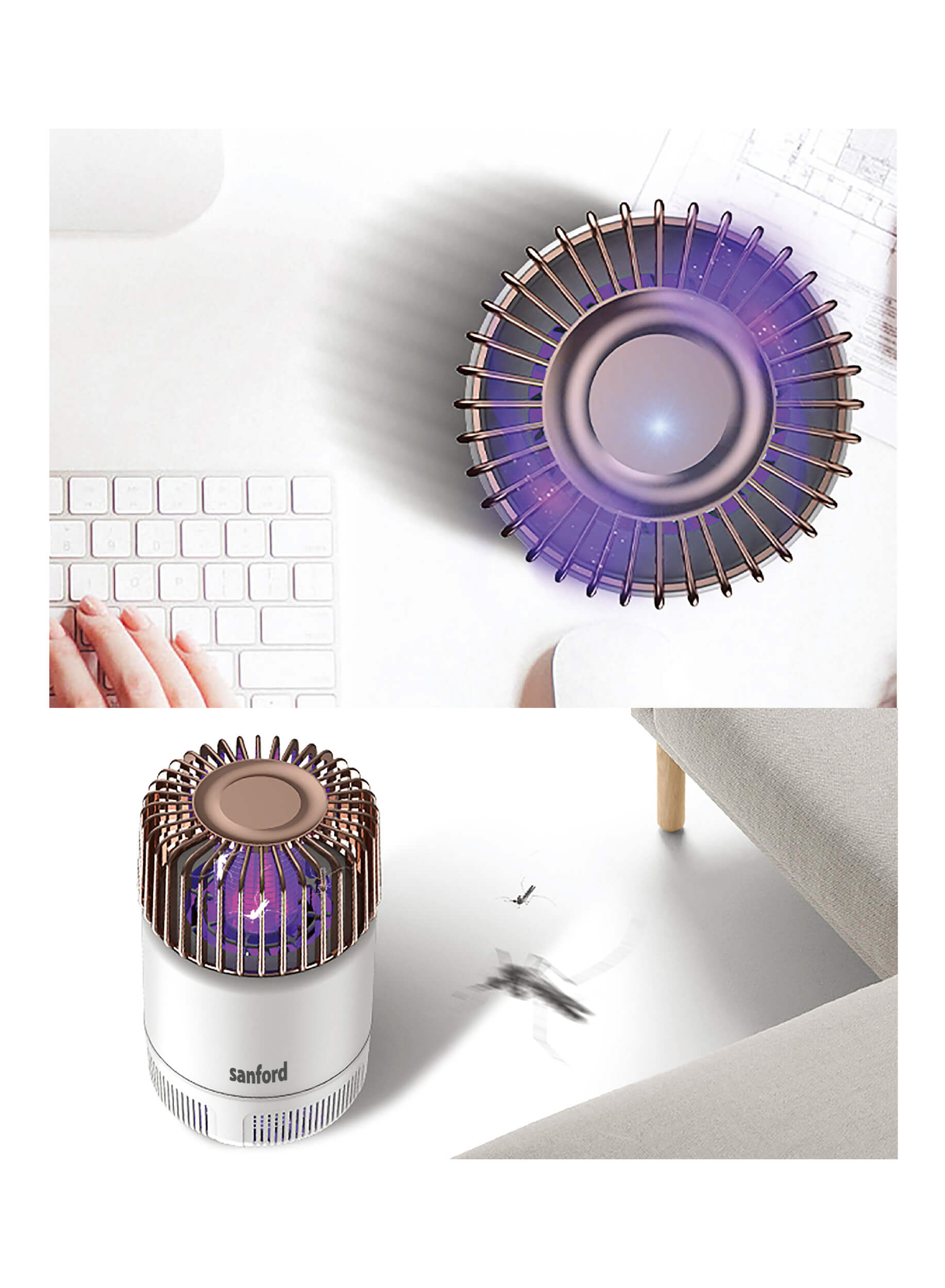 360° UV Purple Lightwave Attracts Files, Moths, Mosquitoes and Other Flying Insects.